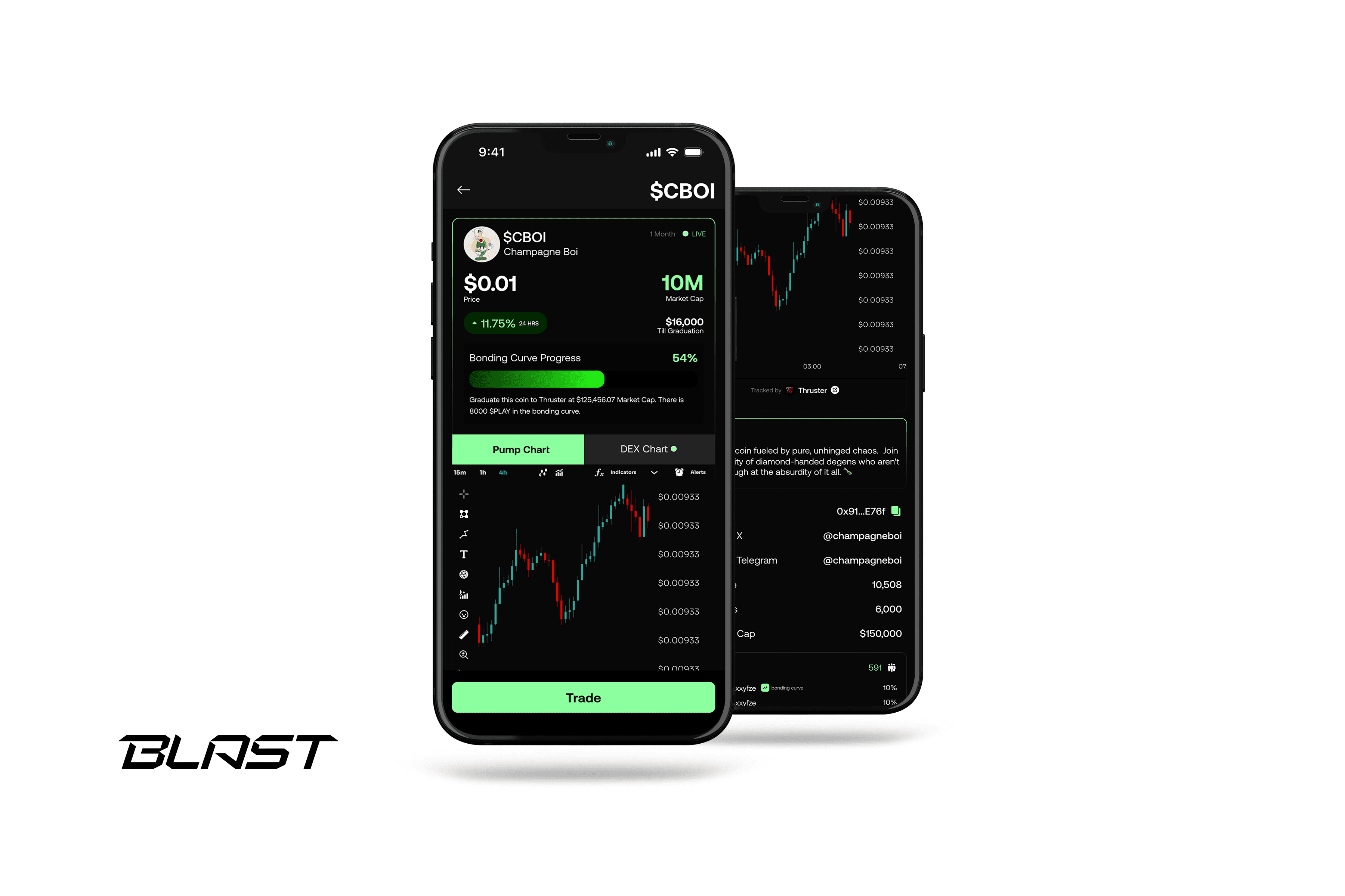 Blast Chain Mini-App is a mobile-first Web3 product that allows users to create their own coins and trade directly within the Blast ecosystem. By integrating built-in wallets and prioritizing mobile usability, the app reduces barriers for Web3 newcomers while enabling speculators to quickly discover and trade emerging memecoins in a fast-paced environment.