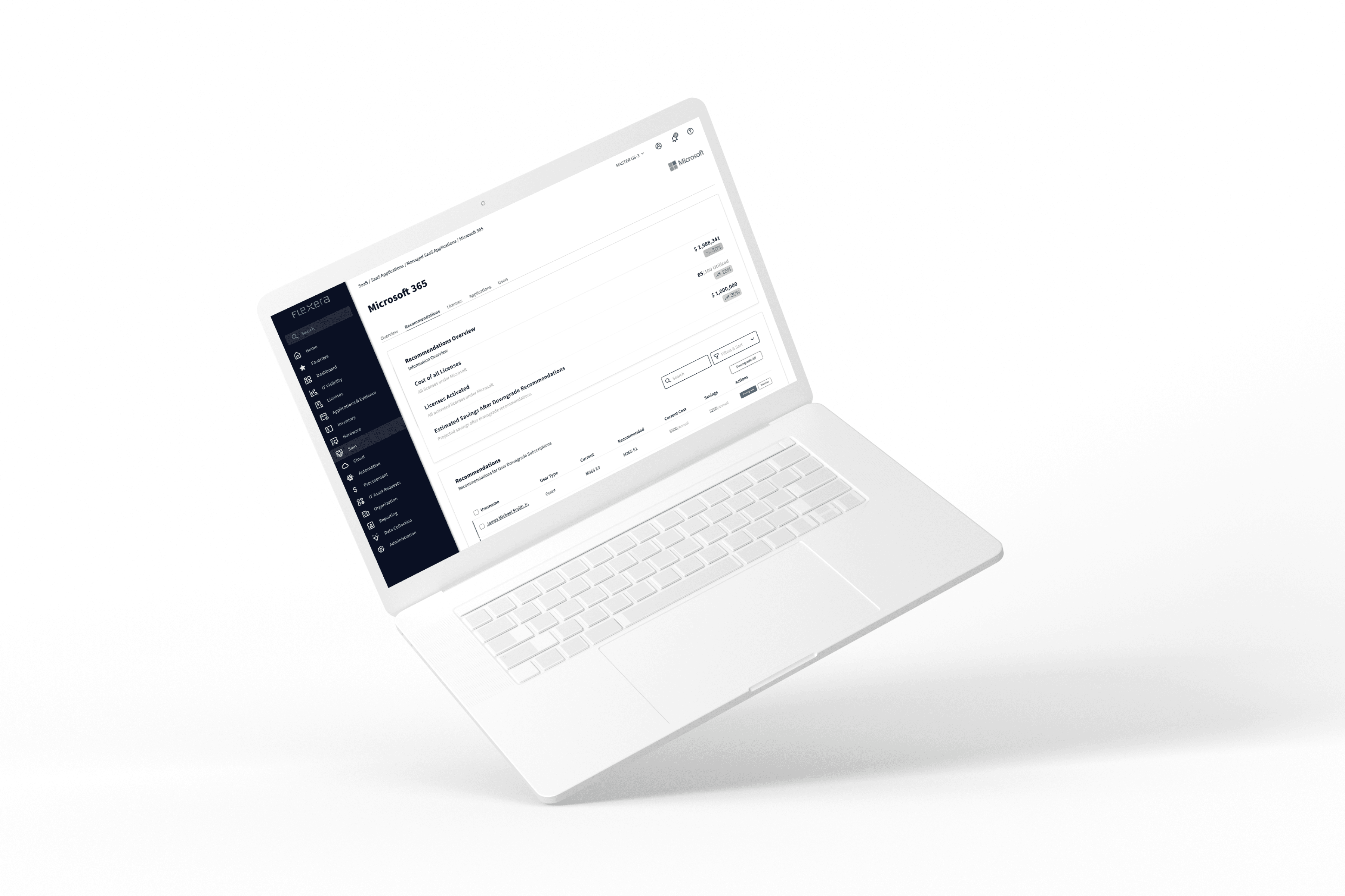 Analyzed Microsoft, Salesforce, and ServiceNow license types to inform data structure and IA